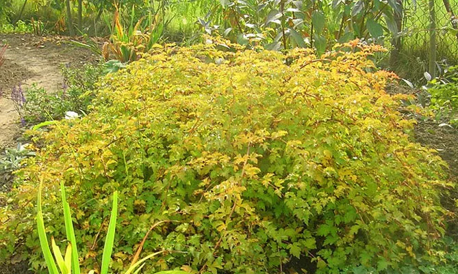 - Перед тем, как сажать стефанандру, обработайте почву на участке, перекопайте, выберите сорняки.