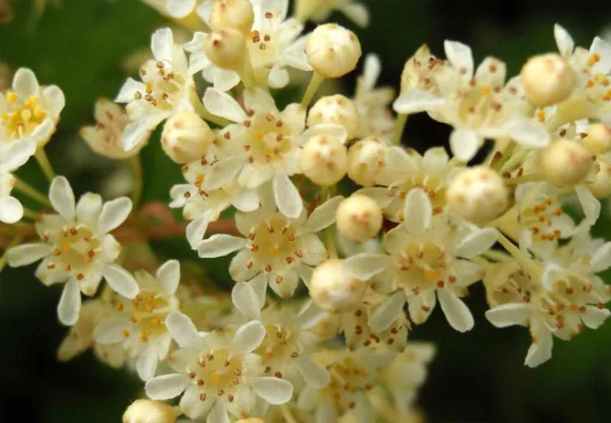 - Цветы. Мелкие (до 5 мм в диаметре), собранные в верхушечные соцветия – метельчатые, щитки и кисти. Гипантий (нижняя часть цветка) обычно чашевидный, до 5 мм в диаметре, голый или опушенный. У чашечки 5 отделов, они приподняты, треугольной или эллиптической формы. Лепестков коронки также 5, они яйцевидной формы, обычно белые, иногда розовые. Тычинки короче лепестков, их обычно 10, иногда 5 и более, до 30. Завязь образуется из одного, иногда нескольких (до 5) плодовых тел. Она содержит от двух до 10 семязачатков.