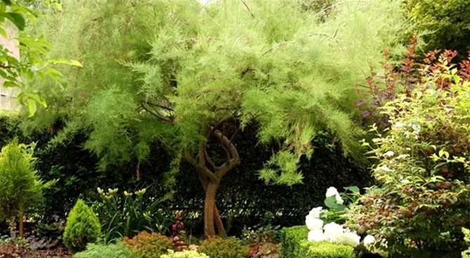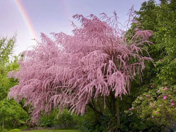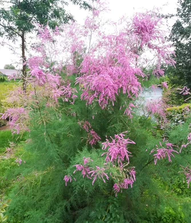 Некоторые виды тамарикса зимой остаются зелеными, что дополнительно украсит сад в белые и серые дни.