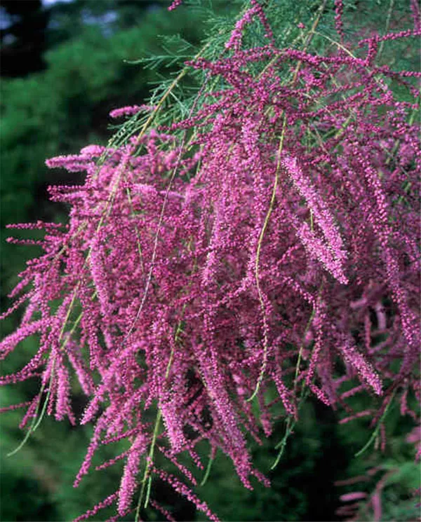 - Tamarix ramosissima Pink Cascade «Пинк каскад» – цветки темно-розовые.