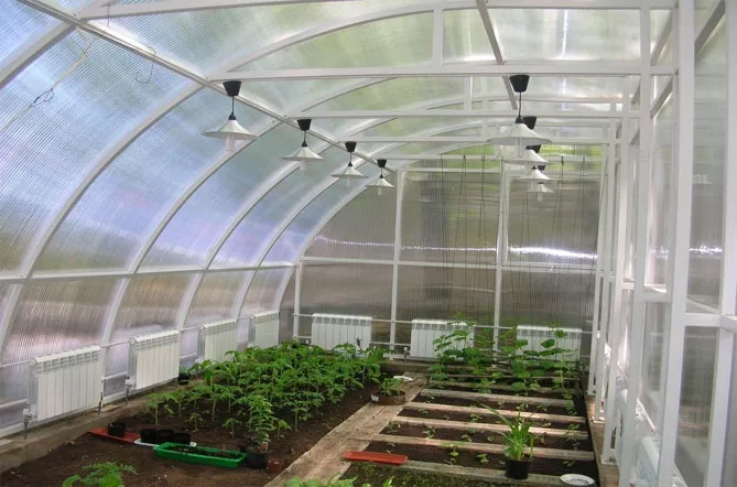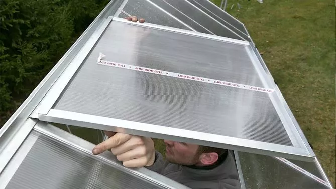 Сотовые панели изготавливают по камерной технологии, они работают как окна в квартире с вакуумом посередине. Использование поликарбоната толщиной 4 мм обеспечивает отличную теплоизоляцию, что особенно важно ранней весной, когда посевы подвергаются воздействию морозов. Поликарбонат очень легкий и прочный, устойчив даже к граду. Использование поликарбонатных панелей имеет также существенное преимущество перед конструкциями на основе стекла, в виде защиты от ультрафиолетового излучения. Ультрафиолетовое излучение негативно влияет не только на кожу человека, но и на посевы. Сотовый поликарбонат удерживает 100% УФ-излучения.