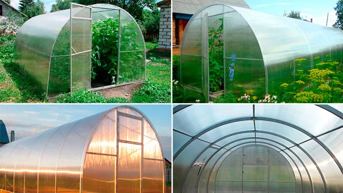 Теплица, изготовленная из поликарбоната, оказывается более долговечной и зачастую более эстетичной, чем туннель из пленки или модель из стекла
