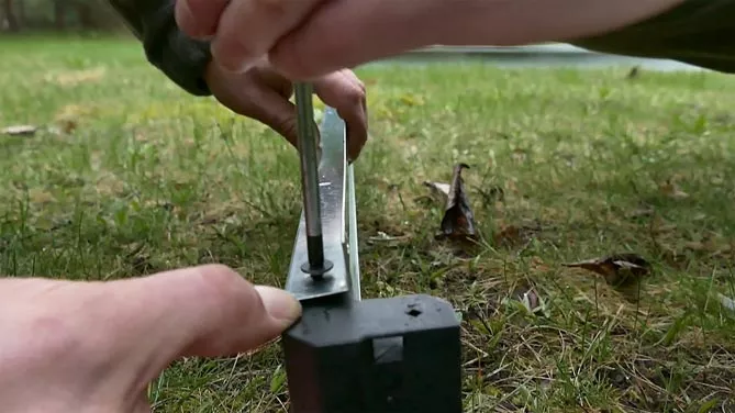 - С помощью болтов и гаек прикручиваем угловые профили фундамента