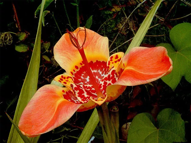 Название «тигридия» растение получило благодаря лепесткам с характерными пятнышками.