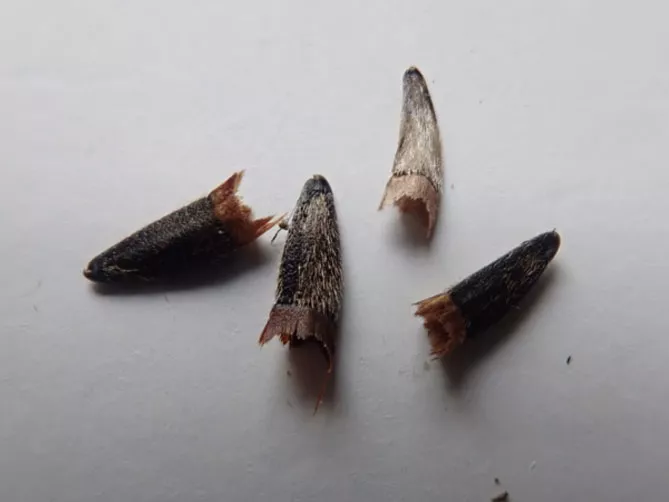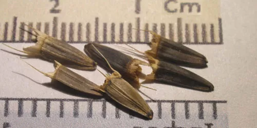 Семена титонии имеют удлиненную форму чешуек и заканчиваются пучком из 4-5 волосков, как у бархатцев. Они очень легко прорастают.
