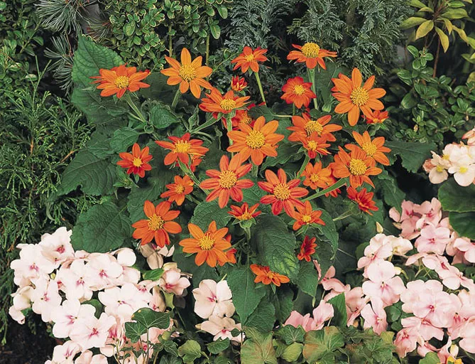 Это однолетнее растение, достаточно высокое, с блестящими цветками, украшающее летом сад обильным и продолжительным цветением. Узнайте, как выращивать титонию – о посадке и уходе в открытом грунте, посмотрите фото видов и сортов, как ее можно использовать в саду. Она идеально сочетается с циннией и другими растениями, образуя эффектные клумбы с мерцающими цветами.