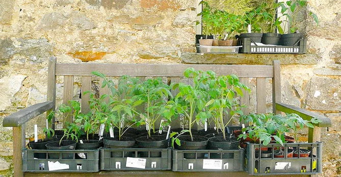 - Перед высадкой молодых растений, нужно закалить кустики. Закалка происходит просто – горшки с растениями выносят в теплицу или на улицу, когда стоит теплая погода. Для удобства, горшочки лучше расставлять на поддон или в ящики, тогда не придется носить отдельно каждый горшочек. Сначала растения выносят на 30 минут, затем постепенно увеличивают продолжительность закалки до требуемой. Перед пересадкой молодые томаты могут стоять целыми днями на улице, проводя лишь холодные ночи в тепле.