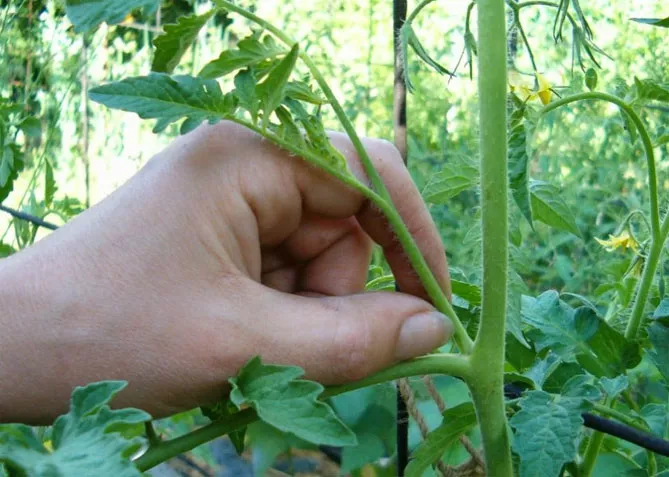 Поэтому кусты нуждаются в подвязке к опорам. Подвязывать рекомендуется не только стебли томатов, но и плодовые кисти, чтобы они не сломались под тяжестью урожая. Кусты образуют крупные листья и много завязей, собранных в гроздья по 3-6 плодов.