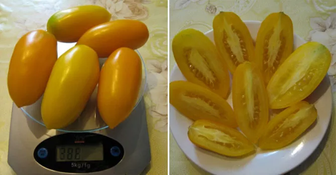 Я сажала это сорт. Куст до 2 метров вымахал. Помидорки вкусные, мясистые, не кислые, не сухие. Для засолки подходят. Кустик, как с картинки по 6 помидорок на кисти. Рассаду сеяла 24 февраля, плодоношение началось в начале июля. Не болели, понравился сорт. Из желтых удлиненных сортов этот лучший, для консервации буду его сажать.