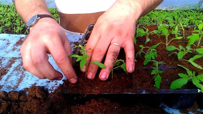 - После развития 2 настоящих листов сеянцы из общих ящиков пикируют в индивидуальные стаканчики. Во время пикировки у каждого растения отщипывают макушку центрального корешка. Этот прием способствует ветвлению корневой системы.