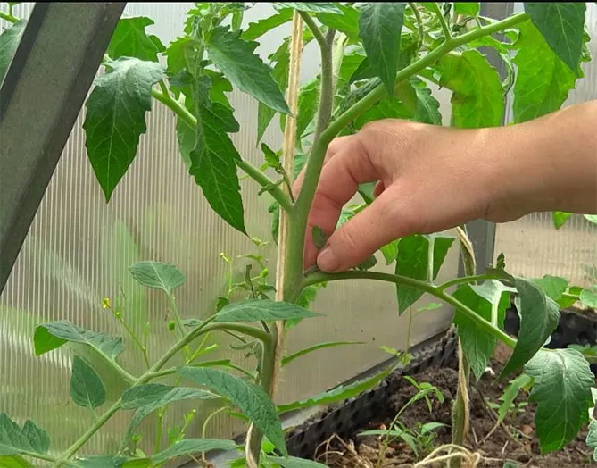 - Существует другой вариант формирования в один стебель. Он позволяет незначительно увеличить выход плодов. Для этого на кусте оставляют самый нижний пасынок, находящийся под первой цветочной кистью. После того как на нем образуются завязи его макушку удаляют.