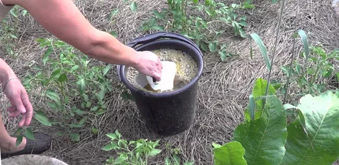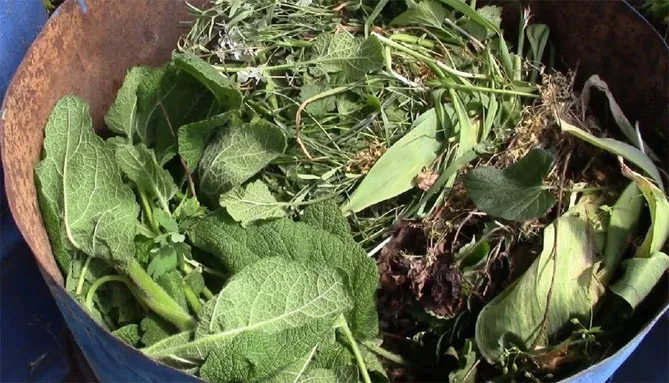 Готовить настой травы можно в любой таре – ведре, выварке, бочке любого объема. Металлические емкости не хуже пластиковых – металл окисляется и насыщает закваску железом. Некоторые огородники умудряются использовать деревянные ящики, вставляя внутрь прочный целлофановый пакет.
