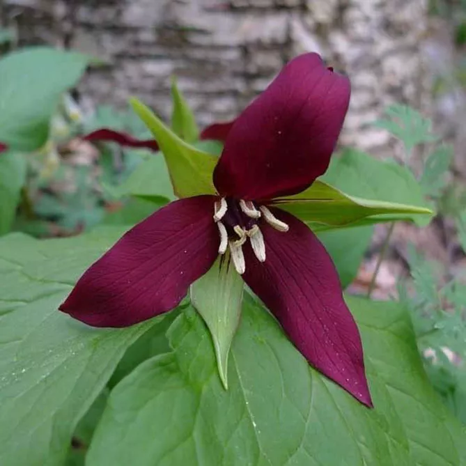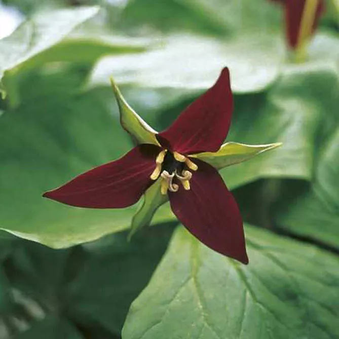 Триллиум прямостоячий (Trillium erectum) – вид с великолепными цветами окраски красного дерева. Растение с оригинальным эффектом. Период цветения: май. Высота – 40 см.