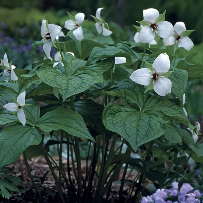 Поскольку триллиумы появляются в саду только 3-4 месяца в году, лучше сопровождать их растениями, которые заставят забыть об их отсутствии в остальное время. Выбирайте привлекательные многолетники для большей части года, иначе клумба быстро превратится в сборище сорняков.