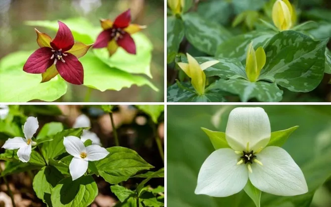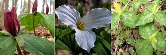 Фото. Некоторые виды триллиума: T. Sessile, T. Grandiflorum, T. luteum