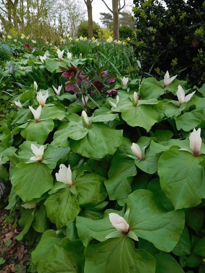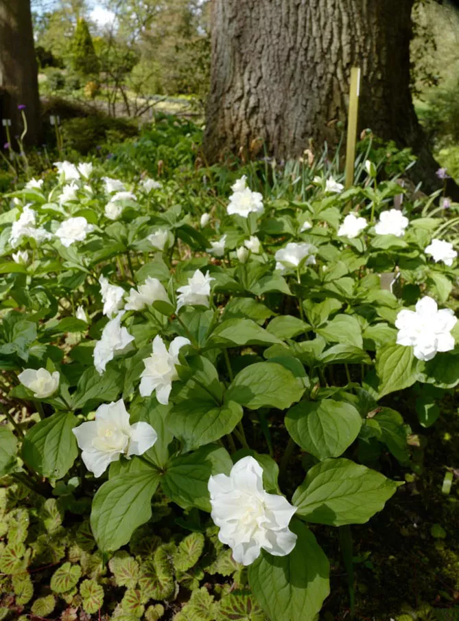 Фото. Триллиумы в ландшафтном дизайне сада используют под кронами деревьев