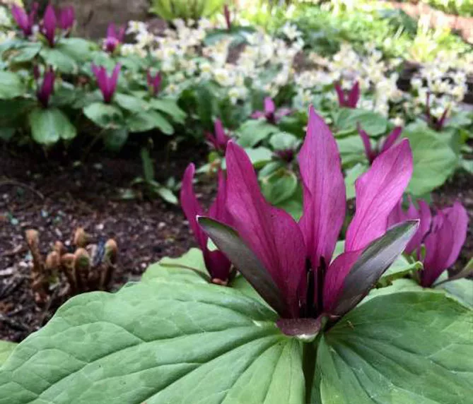 Можно посадить триллиумы в кислую почву с другими многолетниками, которые любят кислые субстраты: