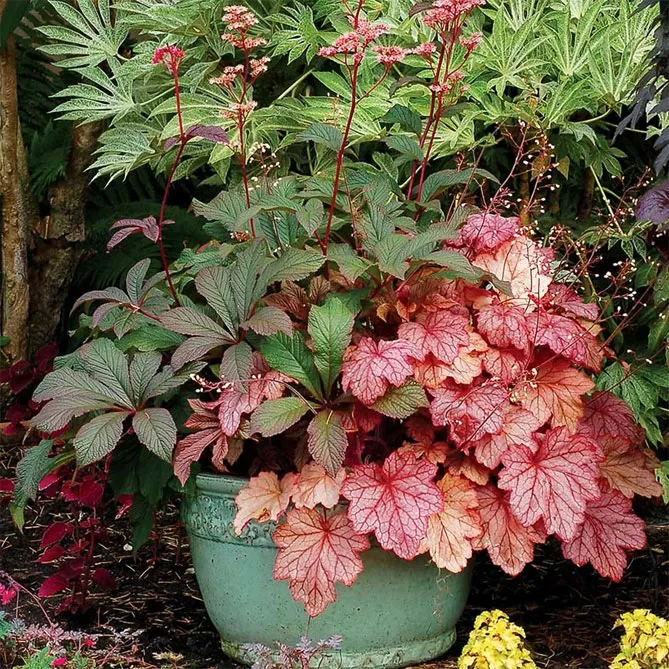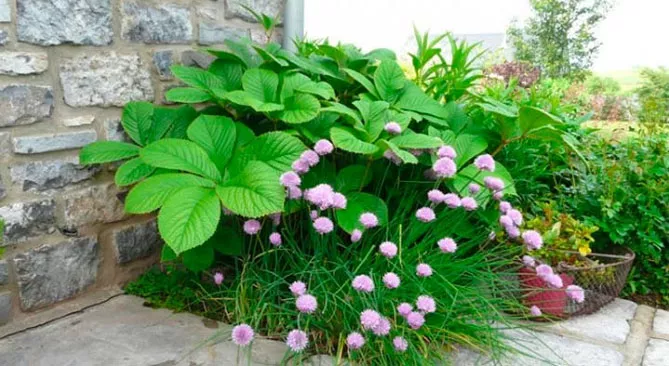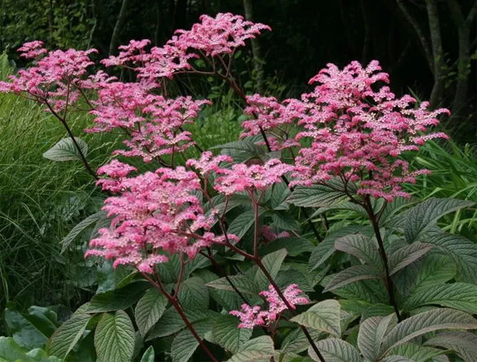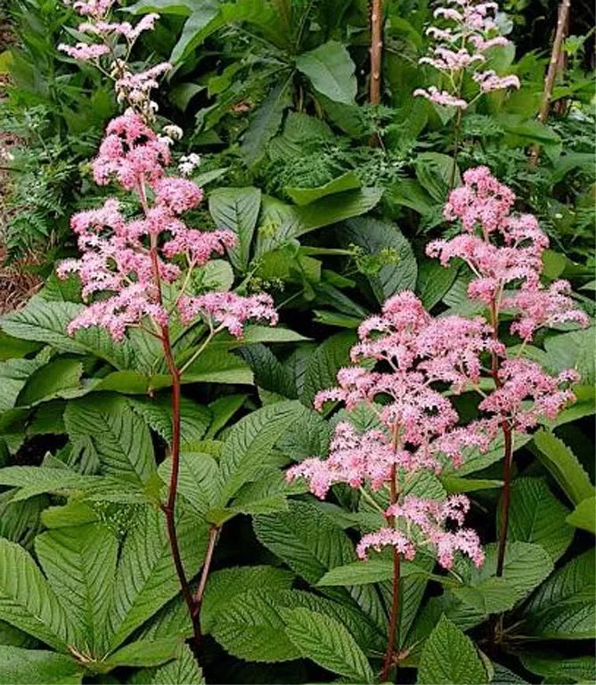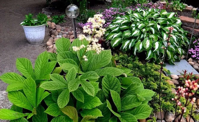 Роджерсия может украсить и романтическую многолетнюю клумбу со следующими растениями: