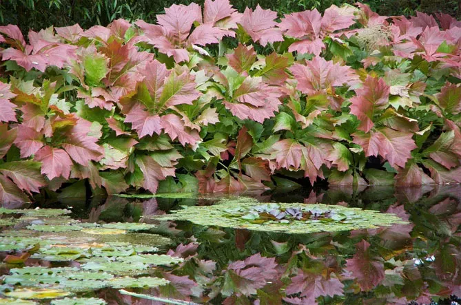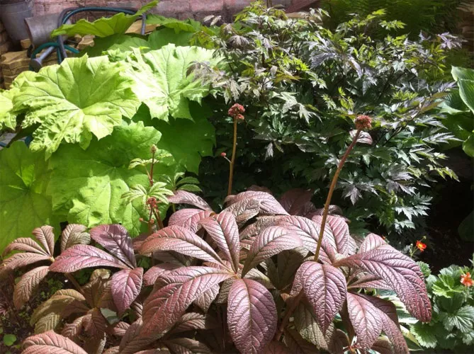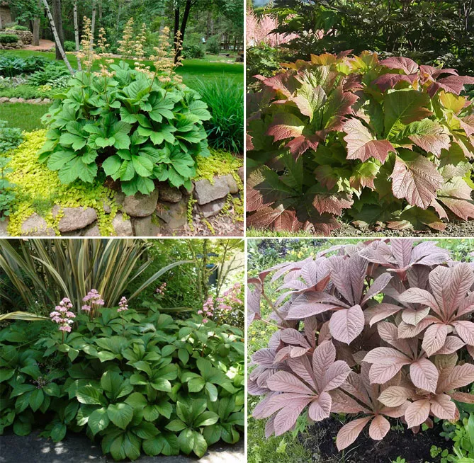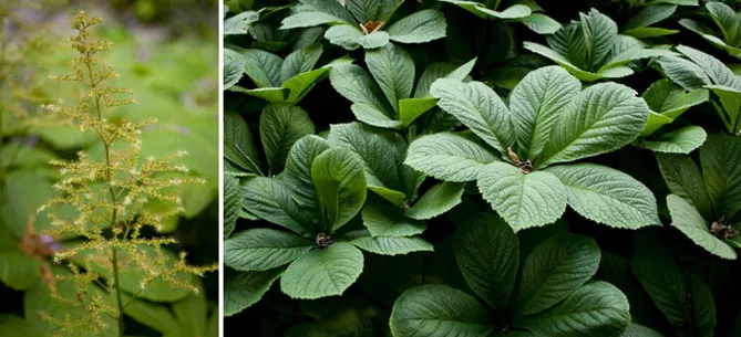 Внешний вид каштанолистной роджерсии зависит от позиции в саду: