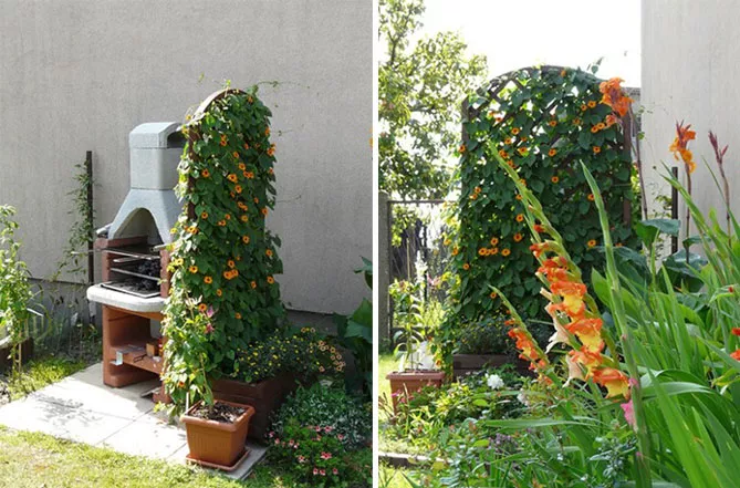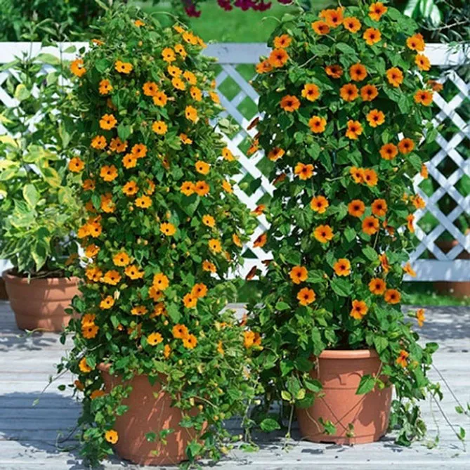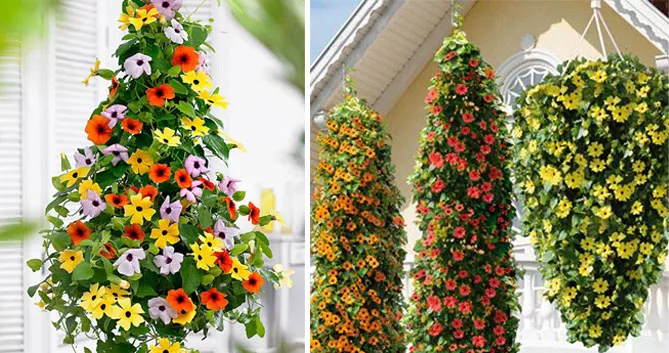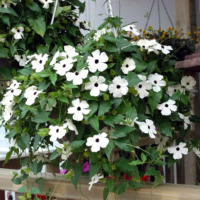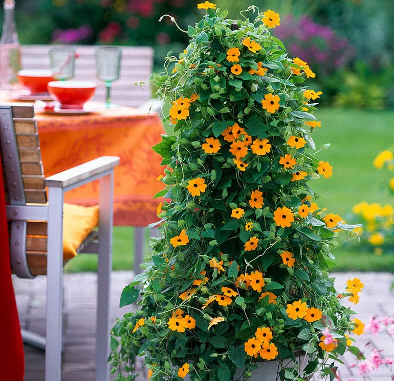 Чтобы тунбергия обвивала опоры стоит сажать ее у беседок, пергол. Если она растет просто в горшке на балконе, то будет красиво свешиваться вниз.