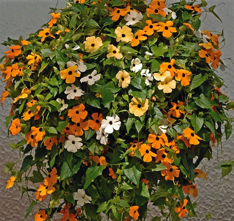 Одна из самых декоративных культурных лиан – тунбергия, известна своими длинными побегами, красивыми листьями и чрезвычайно красочными крупными цветами. В наших климатических условиях обычно это однолетнее вьющееся растение с побегами, достигающими длины 150 см. Мы расскажем, как посадить цветок тунбергия, про выращивание и уход, покажем фото видов, варианты применения в саду и на балконе.