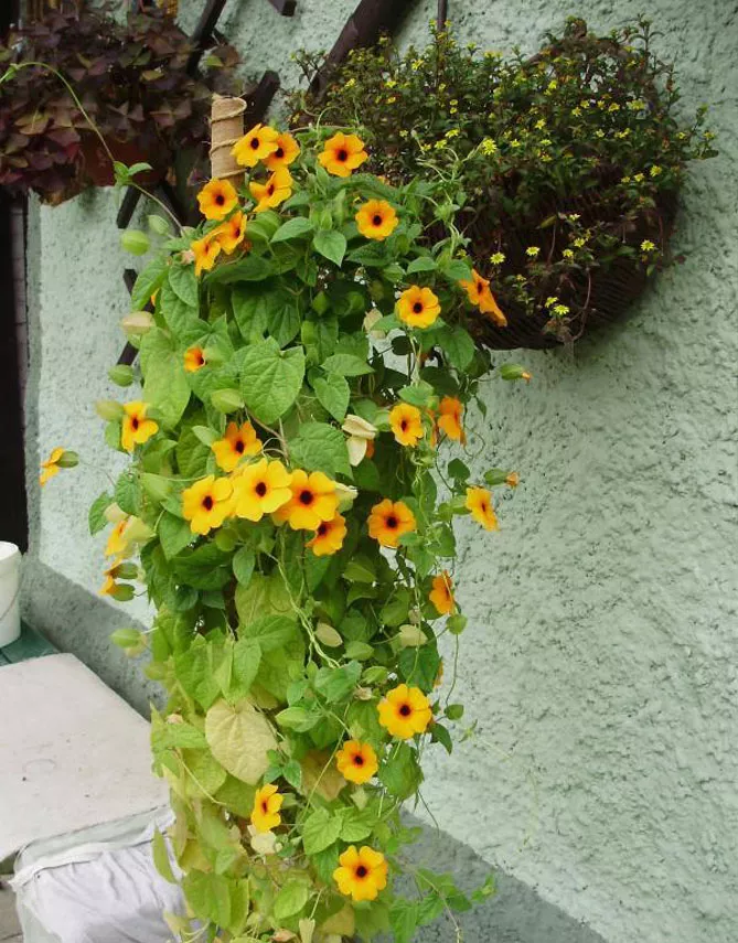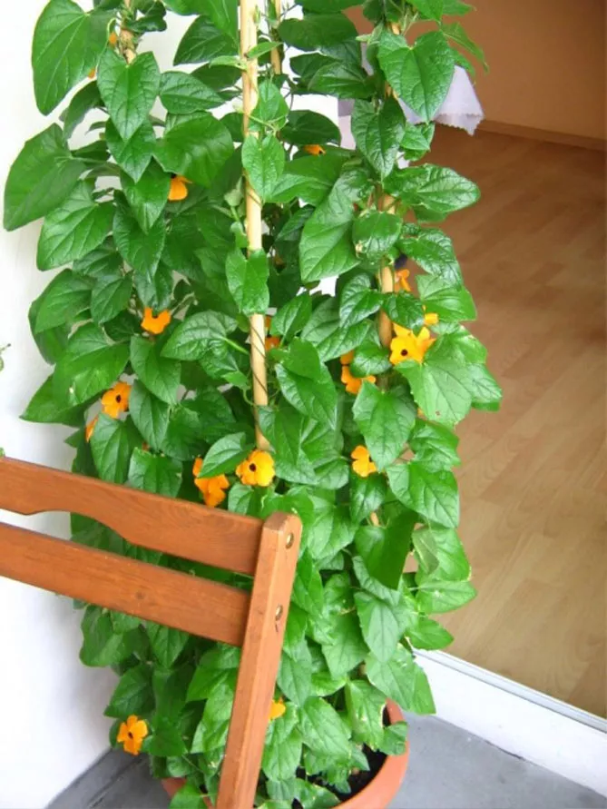Тунбергию можно использовать на тихом балконе или террасе, где обвивающие перила побеги создают красивый зеленый уголок со здоровым микроклиматом.