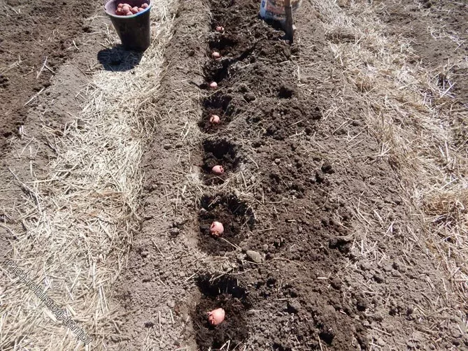 - подкормку (вторую порцию) вносим после появления всходов картофеля, но не позднее, чем до смыкания рядов.