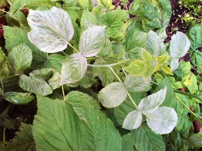 Мучнистая роса – грибок, часто поражающий малину. Его симптом – белый налет на листьях и ягодах. Эффективно удалить его можно с помощью фунгицидов.