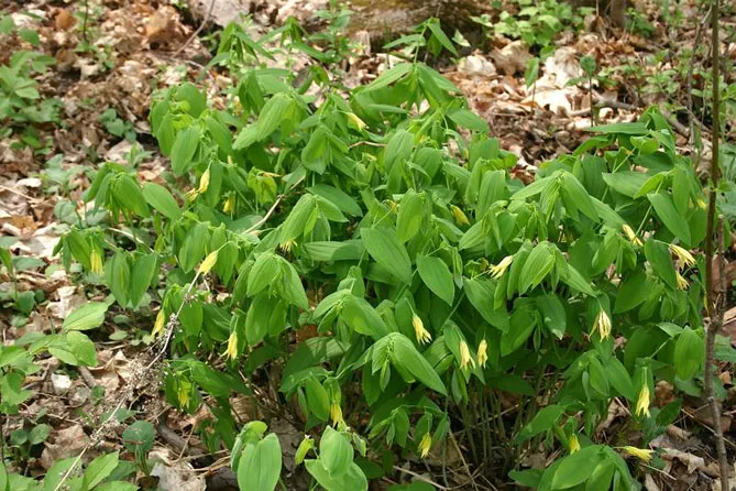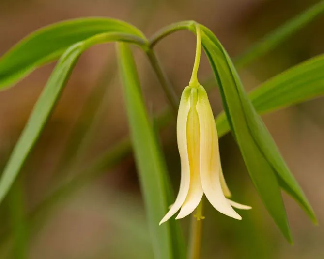 Увулярия крупноцветковая (Uvularia grandiflora) – травянистое многолетнее растение, произрастающее в Северной Америке, с красивой нежно-зеленой листвой, напоминающей листву купены. Весной, в мае на изогнутых стеблях распускаются великолепные желтые цветы-колокольчики, склоняющиеся к земле. Этот цветок ценят за невероятно нежные, скромные цветы, состоящие из шести длинных спиральных лепестков.