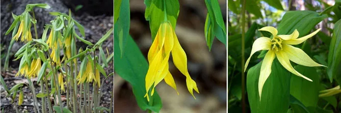 Самый популярный вид Увулярия крупноцветковая цветет с апреля по май. Высота – 40 см. Вид имеет красивые цветы в виде ниспадающих колокольчиков ярко-желтого цвета.