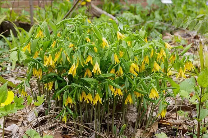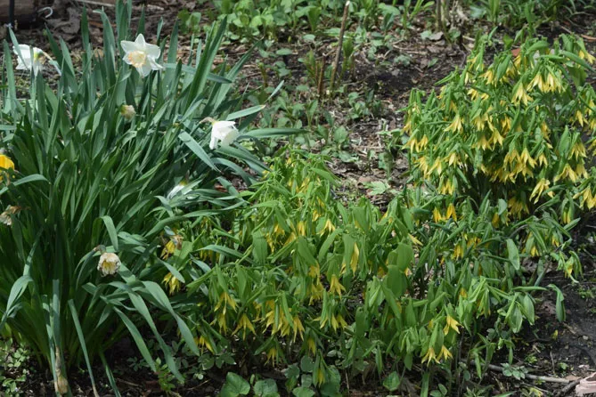 Увулярия также может расти у подножия цветущих весной кустарников, например: