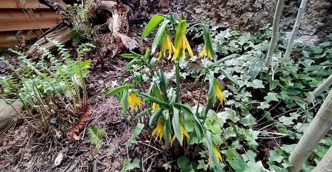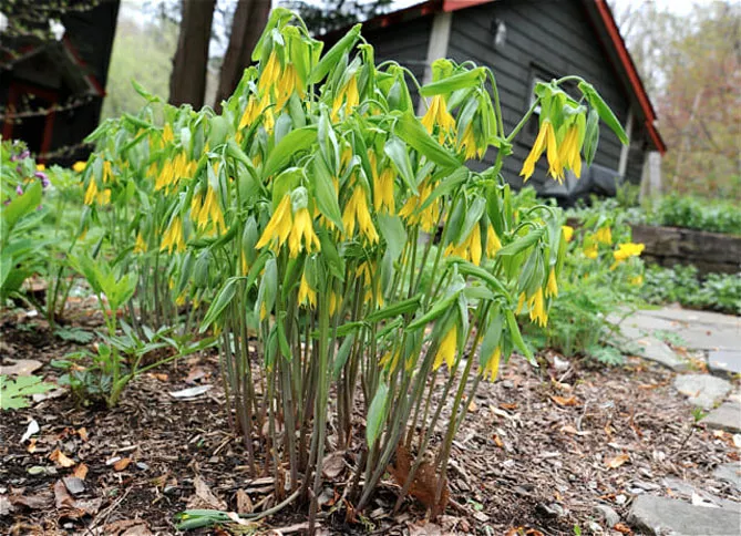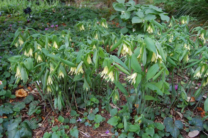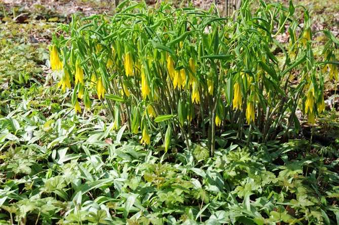 Увулярия в природе растет в подлеске, любит тень или полутень. Можно посадить ее у подножия деревьев или кустарников в компании с другими небольшими теневыносливыми многолетниками (хосты, папоротники, бруннеры, эпимедиумы, триллиумы), чтобы создать очень естественную композицию.
