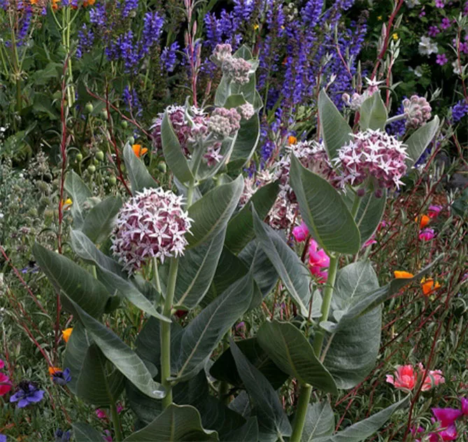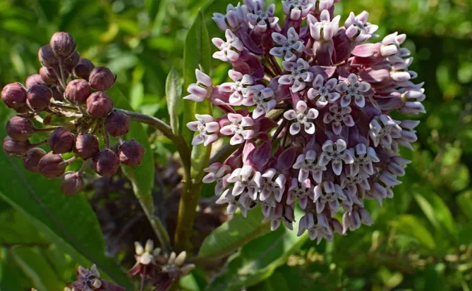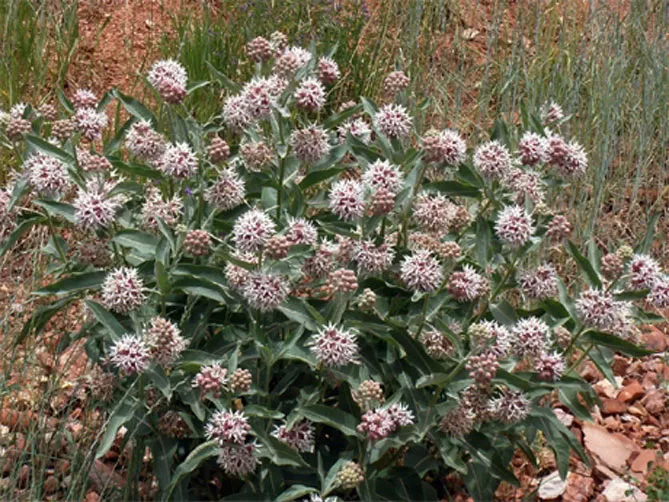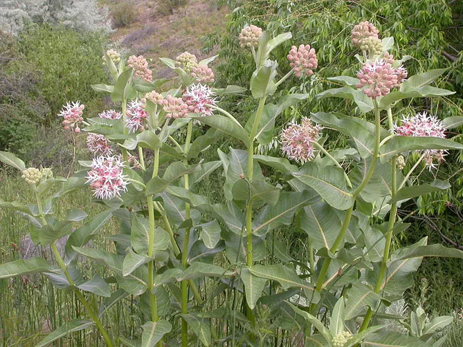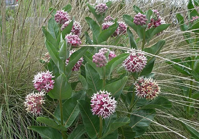 Многолетнее, долгоживущее растение ваточник сирийский (Asclepias syriaca) индейцы использовали, как натуральное лекарство, пищу и материал для изготовления веревок и ткани. Он образует прямостоячий толстый стебель, достигающий 1,5-1,8 м. Стебель опушен, покрыт крупными эллиптическими листьями. Листовые пластинки крупные (до 20 см длиной), блестящие, с отчетливым покраснением. Цветет с июня по август. Цветки розовые, собраны в шаровидные соцветия, обладают интенсивным приятным ароматом. Украшение асклепиаса сирийского – колючие плоды – коробочки с пушистыми семенами.