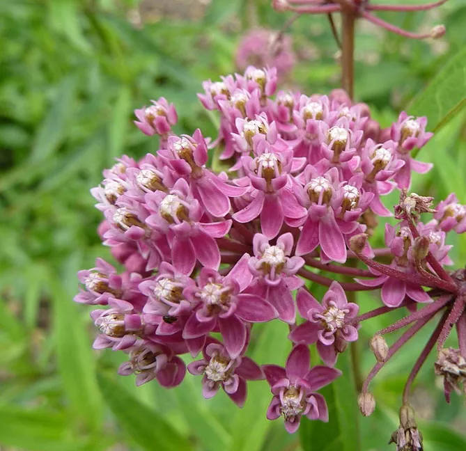Эффектный многолетник, родом из Северной Америки – ваточник красивый (Аsclepias speciosa) особенно бросается в глаза во время цветения, с июля по сентябрь верхушки стеблей украшают красивые плотные округлые зонтики. Соцветия состоят из маленьких пудрово-розовых цветков в форме звезд, завораживающих утонченной красотой и чудесным ароматом.