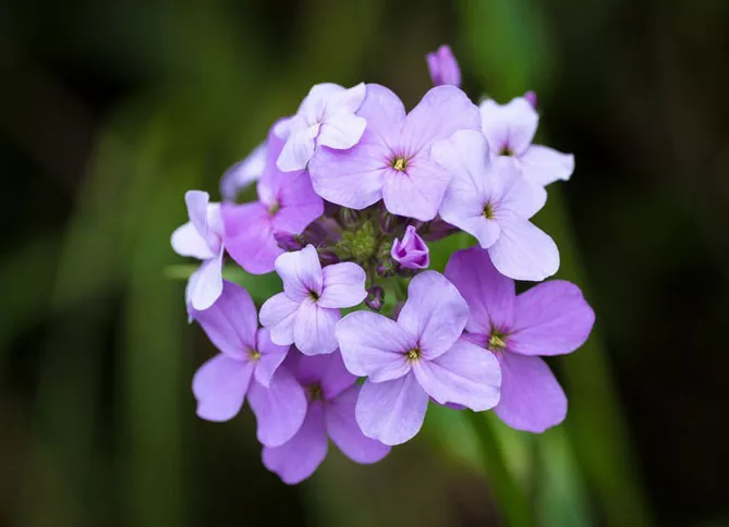 Цветки Hesperis matronalis лилово-розового цвета, но есть сорта с белыми, красными или желтыми цветками (Hesperis lutea).