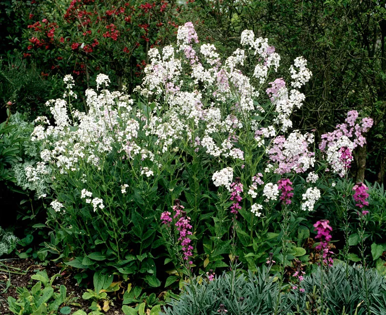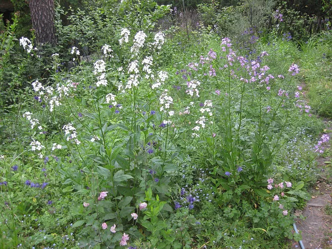 В миксбордере рядом с домом, чтобы воспользоваться восхитительным ароматом ночной фиалки можно сочетать ее с: