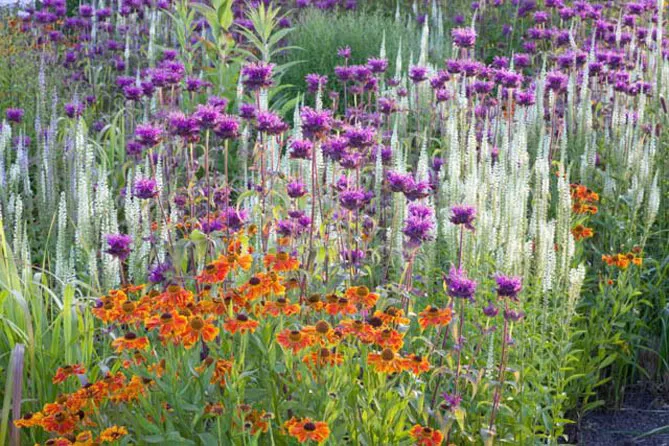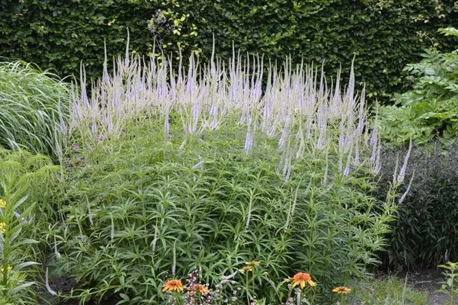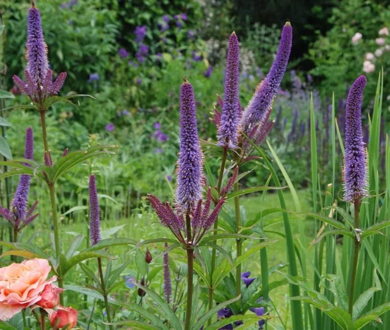 В диких миксбордерах вероникаструм образует элегантные скопления среди многолетников, цветущих летом:
