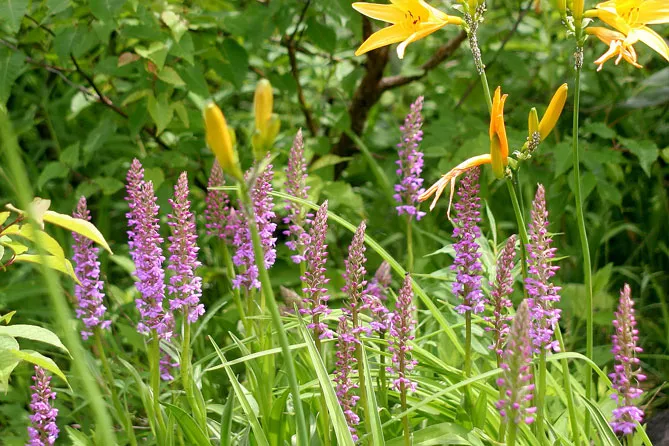 Он особенно любит влажные места и будет творить чудеса рядом с водоемом, на больших клумбах с многолетниками.