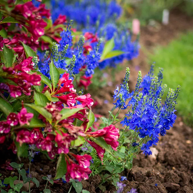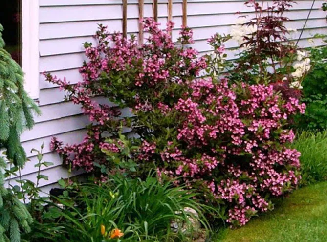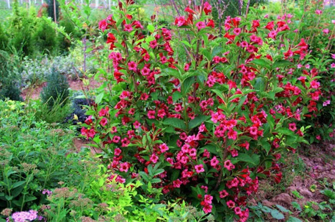 Если вейгела высажена не как живая изгородь или растение в горшке, хорошую компанию ей составят форзиции, жасмин, кольквиция.