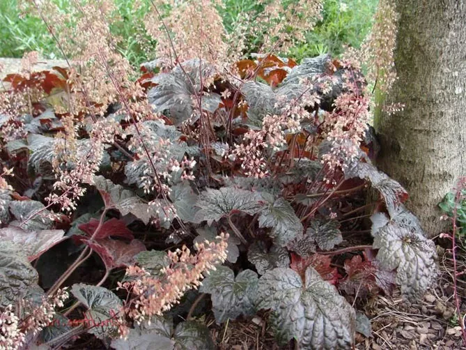 Сорт гейхеры с уникальной окраской листьев. Края листовых пластин волнистые, сильно изрезанные. Весной при отрастании нежно-розовые, затем в процессе вегетации постепенно приобретают насыщенный бронзовый оттенок. Высота растений не превышает 25 см.