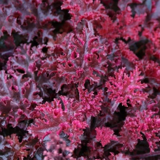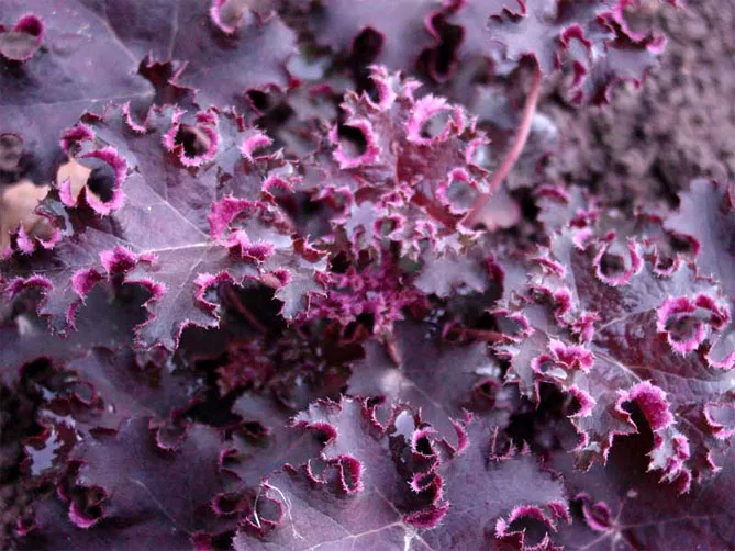 Основная характеристика сорта – пурпурные листовые пластины с резными краями. Высота кустов при правильной агротехнике может достигать 50 см. Ценится за нетребовательность к условиям выращивания. При посадке в тени интенсивность окраски листьев значительно снижается.