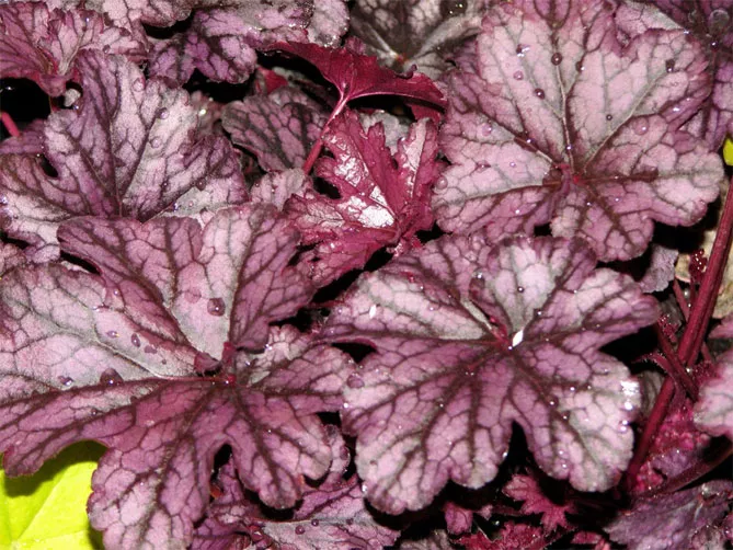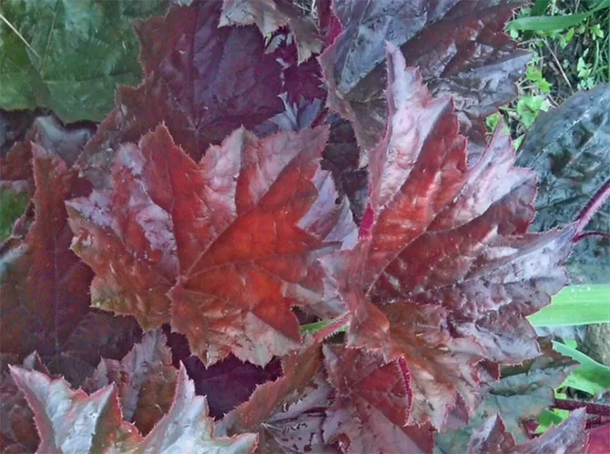 Шоколадная гейхера, сохраняет насыщенную окраску вплоть до самых заморозков. Листовые пластины крупные, с резными краями. Образует очень крупные кусты, поэтому может использоваться для одиночных посадок. Зимостойкость хорошая.