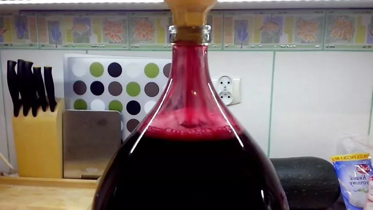 Вино должно храниться в баллоне, заполненном под пробку (с ферментационной трубкой).