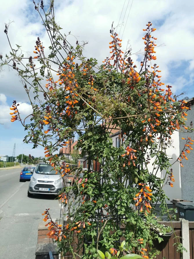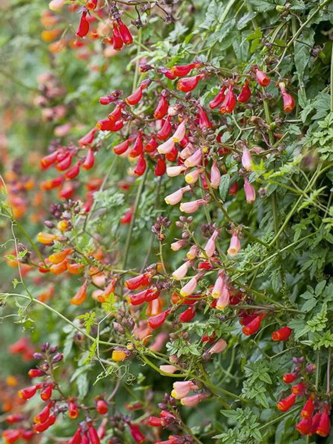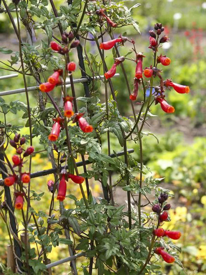 Примечание. Этимологически род Eccremocarpus происходит от греческих слов: ekkremês, что означает «подвешенный», и karpos – «плод». Таким образом, название переводится, как «подвешенный плод».