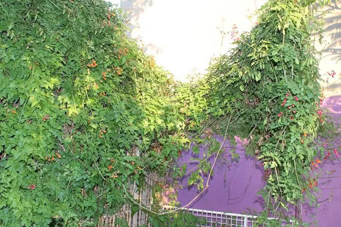 Вислоплодник в саду хорошо сочетается с другими вьющимися растениями: