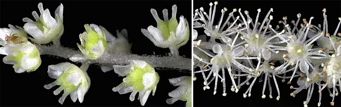Поскольку мужские цветки имеют многочисленные тычинки на длинных нитях, выходящих за пределы лепестков, их метелки в период цветения более пушистые. Поэтому большинство выращиваемых волжанок – мужские. Женские экземпляры выглядят интереснее после закладки семян, когда довольно жесткие побеги красиво свисают под тяжестью огромных гроздей плодов.