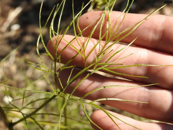 - Листья – дважды перисто-рассеченные или трижды рассеченные, отдельные листья с остро зубчатыми краями. Есть два типа листьев: самые нижние очень длинные, часто триждыперистые, стеблевые листья обычно намного меньше и только дваждыперистые. Одиночный лист имеет яйцевидную форму с вдавленными жилками, которые создают впечатление смятой поверхности. В целом листва густая.