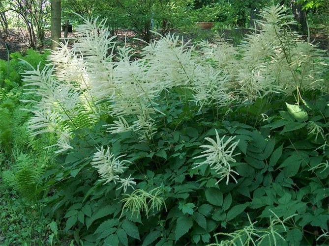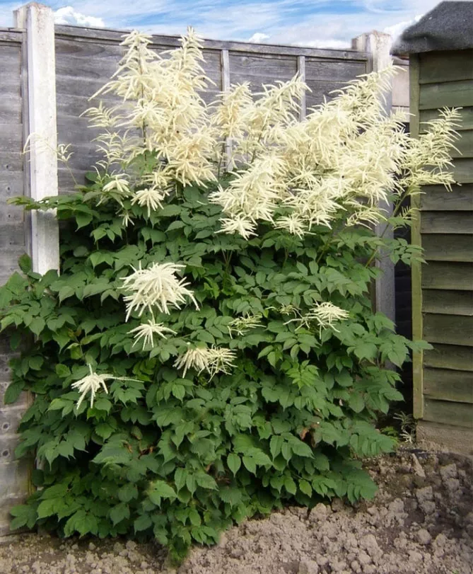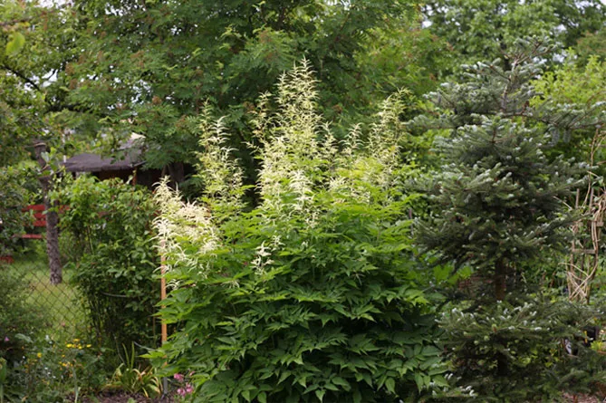 Это долгоживущее многолетнее растение с пышными зелеными листьями, декоративными соцветиями и внушительной кроной высотой до двух метров. В саду предпочитает затененные участки, например, под большими деревьями. Кремово-белые, развевающиеся соцветия станут интересным украшением сада, они также подойдут для срезки и сушки цветов. Мы расскажем, как выращивать кустарник волжанка – посадка и уход в открытом грунте, способы размножения, представим описания сортов и видов с фото.