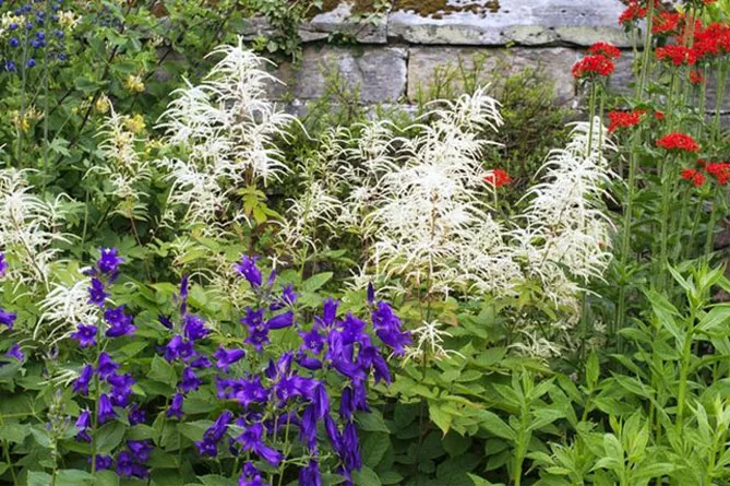 - Волжанку можно высаживать по одной на видном месте – в качестве солитера (растение, высаживаемое в одиночку). Она имеет крупные размеры, пышную листву и величественные соцветия, поэтому может представлять интересную часть сада.