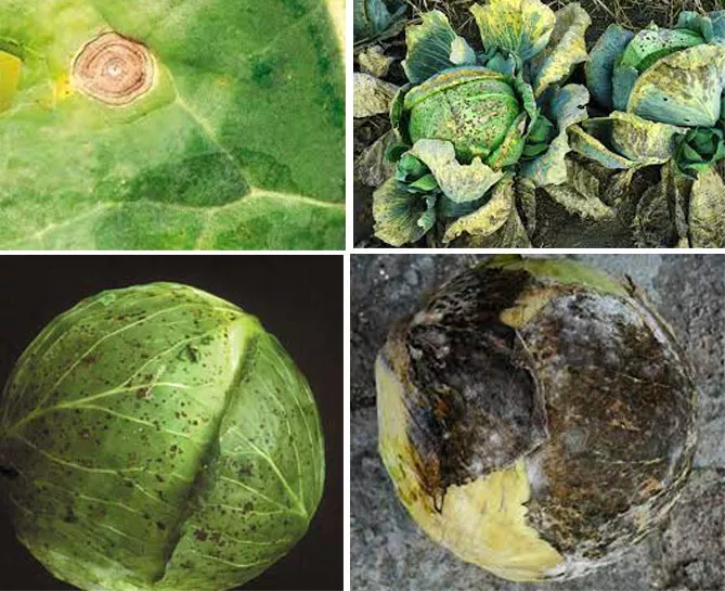 Болезнь альтернариоз или черная пятнистость капусты вызывают грибы рода Alternaria: A.brassicae и A. alternata.